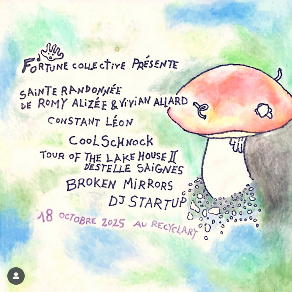 Le 18 Octobre, Fortune Collective vous invite au Recyclart pour un sacré mic-mac de performances, lectures, danse et concerts !🕰️𝕿𝖆𝖇𝖑𝖊 𝖉𝖚 𝖙𝖊𝖒𝖕𝖘🕰️ 19h00: Ouverture des portes 19h30: Constant Léon - Limérance (Lecture) 20h00: Estelle Saignes - Tour of the Lake House II : the Ghost Seaplane (Performance) 21h00: Romy Alizée & Vivian Allard - Sainte Randonnée (Comédie Musicale) 21h45: Broken Mirrors (Danse/Performance) 22h15: Coolschnock (Live) 23h15: DJ Startup (Live) 01h00: Fermeture des portes 😶🌫️𝕬𝖚 𝖕𝖗𝖔𝖌𝖗𝖆𝖒𝖒𝖊😶🌫️ 📖Constant Léon📖 Constant Léon - Ancien correspondant et documentariste en Arménie de 2018 à 2023, récompensé du Fonds d’aide à la création sonore 2024 de la Fédération Wallonie Bruxelles, Constant Léon travaille à une fiction sonore avec Tammam Hamza, ainsi qu’à Maison-Oedipe, un roman noir sur l’incendie d’un musée de l’inceste dans le cadre du master de création littéraire de la Cambre, Bruxelles. Musique par Edna 🌫️Tour of the Lake House II : the Ghost Seaplane - Estelle Saignes🌫️ Une visite guidée apparemment synthétique mène dans les tréfonds du lac avoisinant, parcourus par un vaisseau énigmatique et insaisissable. ⛰️Sainte randonnée - Romy Alizée et Vivian Allard⛰️ La sueur ruisselle sur la roche du col de Doran. Romy halète, legging rose trempé. Les yeux rivés sur les sommets, elle tente de contrôler son vertige. Sa seule chance de survie : CHANTER ! 🔥Broken Mirrors🔥 Silhouettes dans la brume, éclats de miroirs et pulsion collective. Broken Mirrors est un défilé mutant où les corps se dédoublent, se troublent et se perdent dans leurs propres reflets. 🎸Coolschnock🎸 Coolschnock c’est le projet solo d’Anaïs Sière, une fille qui se destinait plutôt à être autrice de bande-dessinée. 🔊DJ Startup🔊 Simon Lahure aka Dj Startup est à la recherche la formule occulte qui permettra relancer l’épidémie de danse de 1518. Dans un flow exaltant de mélodies midi, guimbardes, flutiots et ocarinas souffleront la musique d’une teuf antédiluvienne. 🏢Adresse🏢 RECYCLART 13-15 RUE DE MANCHESTER 1080 MOLENBEEK 💸Pay What you can💸 🖼️Visuels par Adèle Grégoire🖼️ Adress: Recyclart13-15 rue de Manchester 1080 Molenbeek Bruxelles ![]() |
