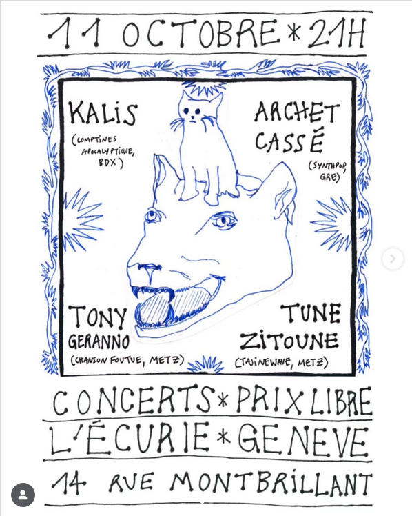 11.10.2025 | 21:00 | Genève | ❦ KALIS ❦ TONY GERRANO ❦ ARCHET CASSE ❦ TUNE ZITOUNE ❦Discription: