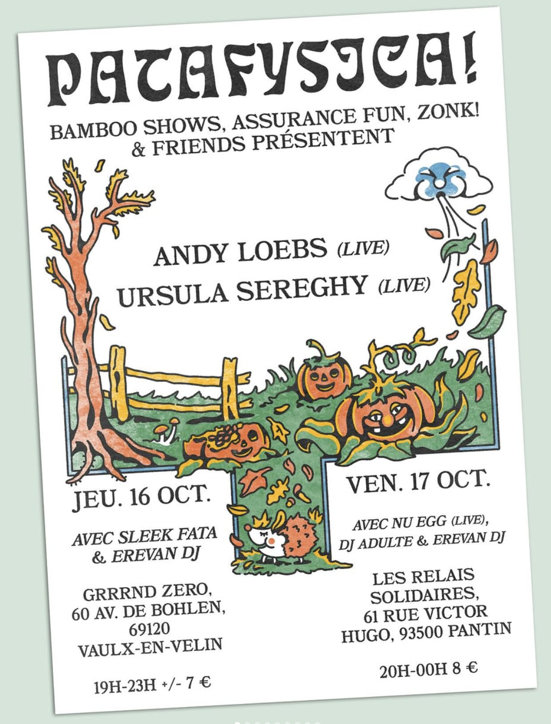17.10.2025 | 20:00 | Paris | PATAFYSICA! Bamboo Shows, Assurance Fun, Zonk! & Friends présentent : Andy Loebs et Ursula SereghyDiscription:
