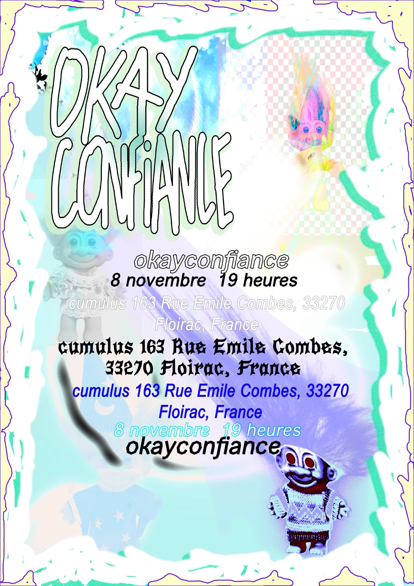 OKAY CONFIANCE résidence et festival en équipe réduite 👽🧫 Tout le process de crazy fabricationzzzZZ va se dérouler à l_Inconnue entre le 13 et le 17 mai. On vous ouvrira les portes le soir du VENDREDI 17 MAI 2024 ! On prépare des potions conspirations et du kimchi de pirates <3VIIIIIIIIENS Contact: okayconfiance@mailo.comAdress: L inconnueParc Chantecler 181 rue François Boucher 33400 Talence Talence |