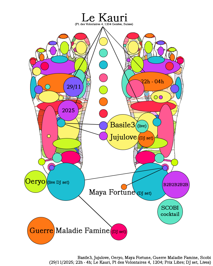 | 29.11.2025 | 22:00 | Genève | 🧘🏻♀️👣Basile3, Jujulove, Guerre Maladie Famine, Oeryo, Mayafortune👣🧘🏻♀️Discription: