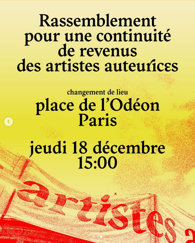 | 18.12.2025 | 15:00 | Paris | Rassemblement pour une continuité de revenus des artistes auteur.ices |