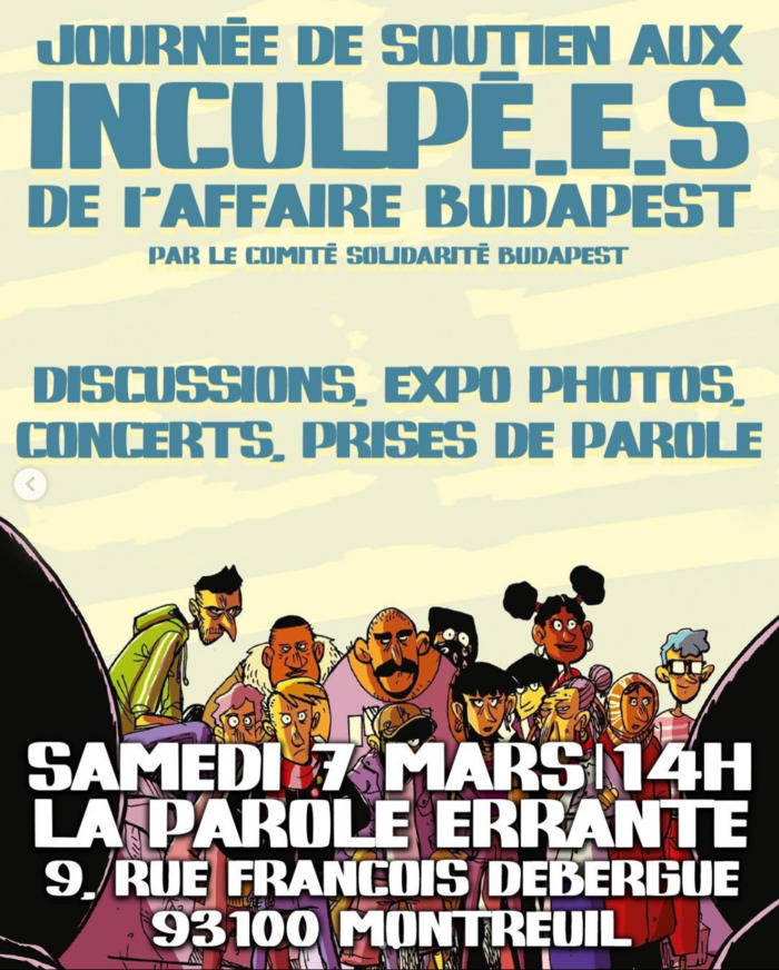 | 07.03.2026 | 14:00 | Montreuil | Journée de soutien aux inculpé•es de l'affaire BudapestDiscription: