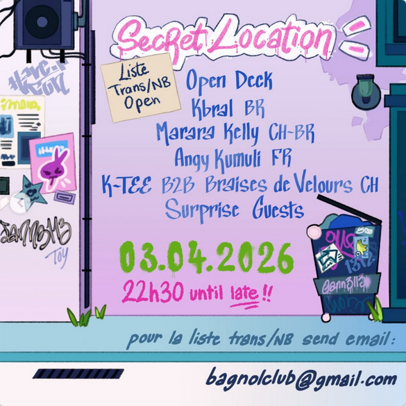 Retour aux sources de la teuf et ouverture du printems avec une rave underground comme on les aime!Formule simple, banger DJ de Rio de Janeiro @kbralpedro accompagné par la queen de Belem @marara_kelly , le tout blendé avec vos locaux favoris @ddmktee & @angykumuli et invité.x sueprise car il y a de la place pour tout le monde dans notre bagnol🫣❤️ 📍Secret location: Dévoilée le Jour J en MP. 🎫 Tickets: Lien en bio. Ne dormez pas dessus. ⚠️Liste Trans/NB: Envoyez un mail à bagnolclub@gmail.com (max 24h avant). 💗Art by @cann.3ll3 ![]() |